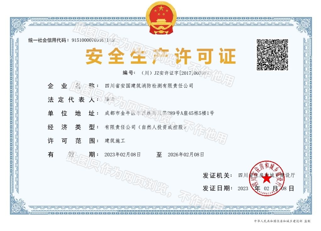 四川省安國建筑消防檢測(cè)有限責(zé)任公司,成立于1998年,經(jīng)四川省公安消防總隊(duì)批準(zhǔn),工商部門注冊(cè)的獨(dú)立法人單位。